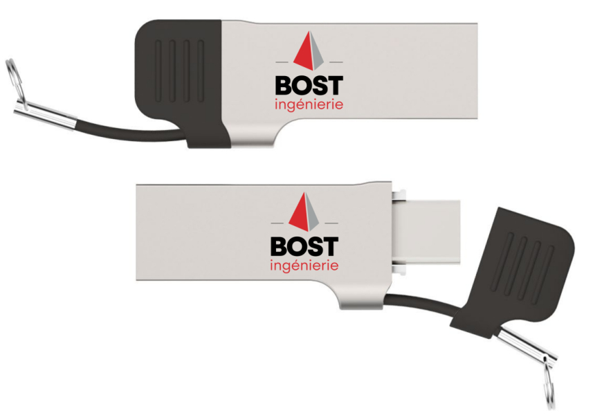 Le capuchon du connecteur peut également être personnalisé, avec une gamme de 7 couleurs disponibles. Vous pouvez assortir le capuchon aux couleurs de votre marque ou opter pour un contraste accrocheur. La clé Lynx elle-même possède deux connecteurs USB : un standard à une extrémité et un USB de type C à l'autre. Cela permet une connectivité facile avec les appareils anciens et récents, quelle que soit la technologie utilisée par votre public cible.