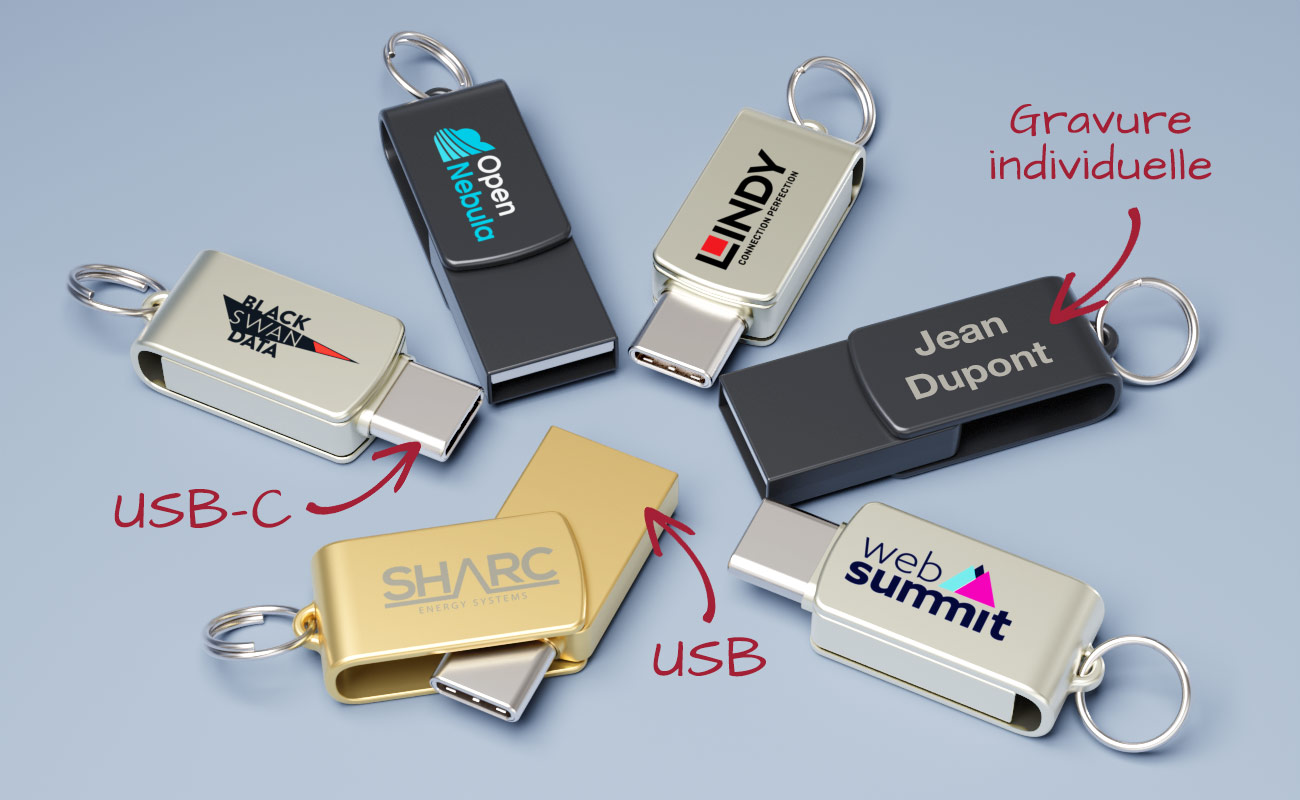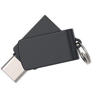 Notre Nano USB est une clé USB compacte à double connecteur, conçue pour offrir un confort d'utilisation moderne. Dotée à la fois d'un connecteur USB standard et d'un connecteur USB-C intégrés dans un boîtier élégant, elle constitue la solution idéale pour transférer des fichiers en toute simplicité entre ordinateurs portables, ordinateurs de bureau, tablettes et smartphones. Il suffit de faire pivoter la clé USB et de choisir le connecteur que vous souhaitez utiliser. La Nano est également équipée d'un anneau porte-clés très pratique, parfait pour l'attacher à un trousseau de clés ou à un cordon.