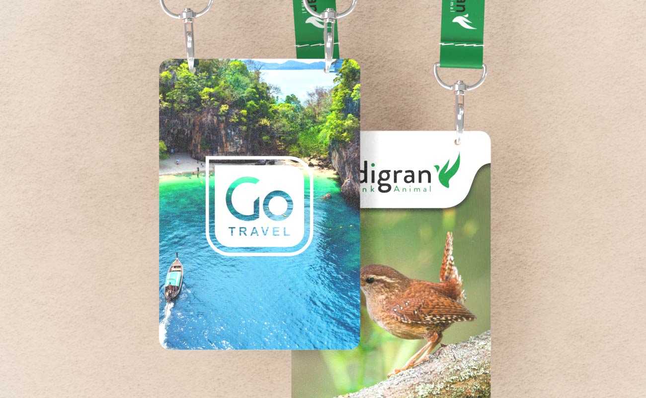 Notre carte PVC en format paysage peut présenter votre logo, votre image et bien d'autres choses encore dans des détails étonnants. Les deux faces de la carte peuvent être marquées pour un effet de surprise supplémentaire. Un accessoire moderne et élégant pour le bureau, les événements, les salons et autres.