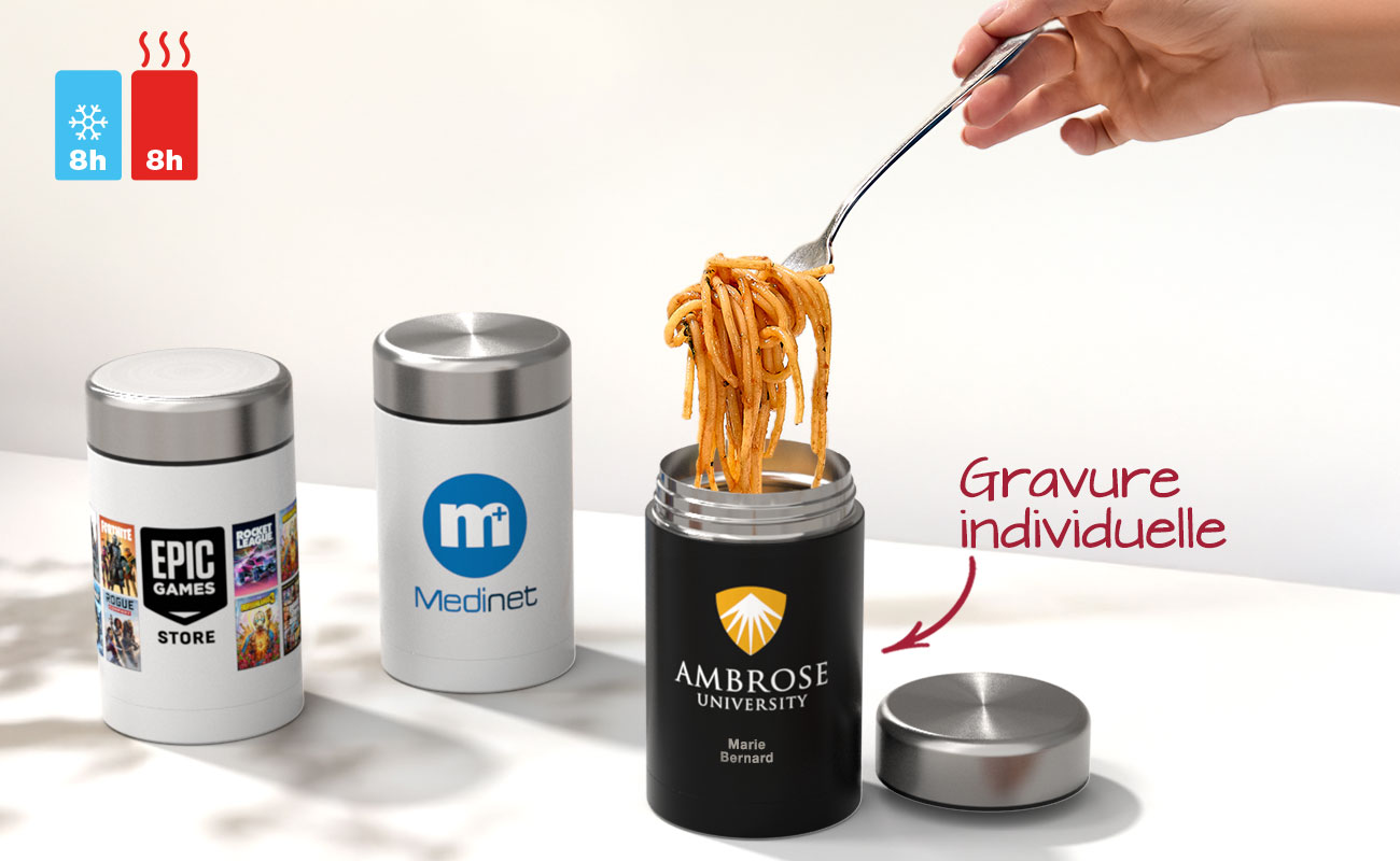 La gravure permet de marquer de manière totalement indélébile vos noms/prénoms. Ce service est idéal pour les clubs sportifs et les écoles, car il permet d'éviter toute confusion potentielle entre les bouteilles d'eau ou les tasses pendant les entraînements ou les compétitions. Chaque nom accompagnera votre logo et votre slogan sur le produit.