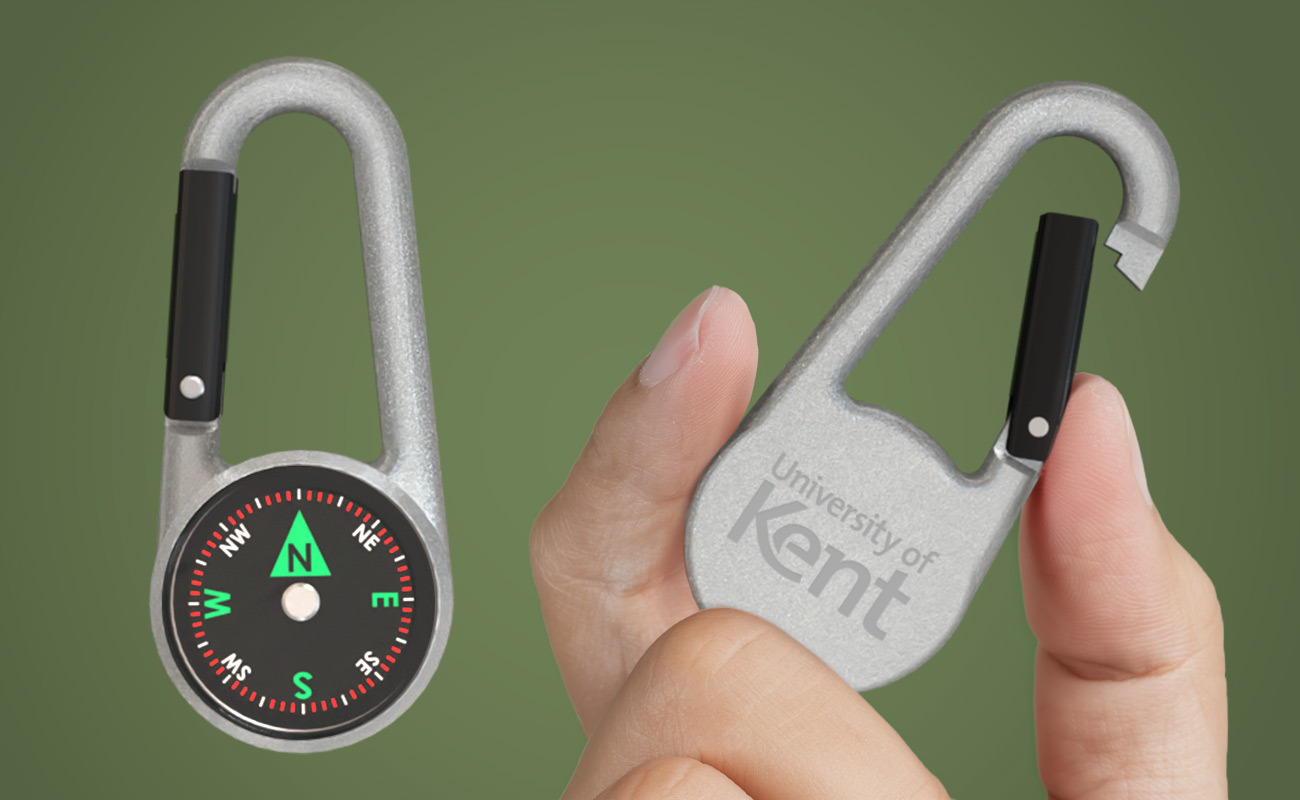 Le mousqueton WayPoint Compass est un porte-clés pratique qui vous accompagne partout. L'aiguille magnétique est suspendue dans de l'huile pour garantir une rotation fluide, et la coque extérieure est en alliage de zinc ; il est également doté d'un fermoir à ressort sécurisé. Au dos du WayPoint se trouve un emplacement dédié à la personnalisation pour mettre en valeur votre logo. Contactez-nous dès aujourd'hui pour connaître nos derniers tarifs, obtenir des échantillons et connaître les délais de livraison express.