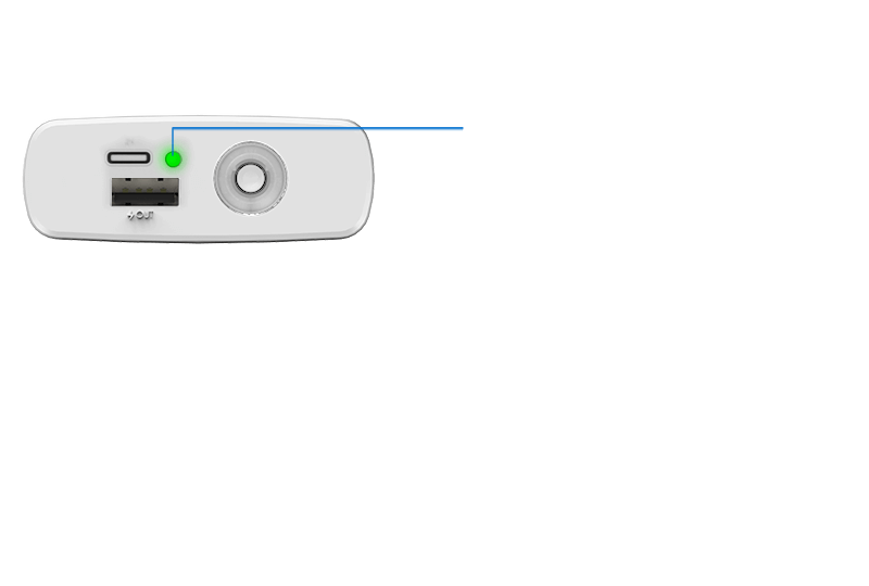 - Il est facile de vérifier l'état de charge. Presser le bouton pour voir la charge restante.