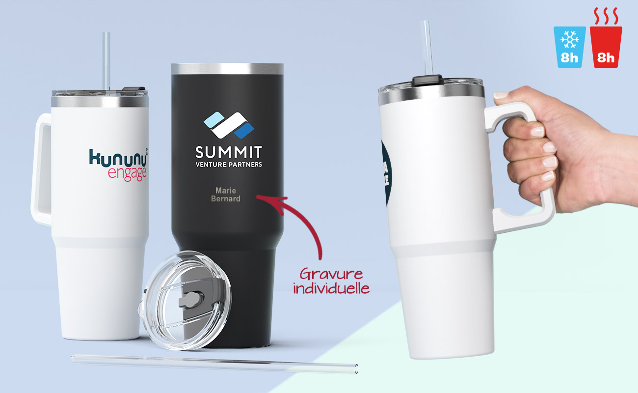 La gravure permet de marquer de manière totalement indélébile vos noms/prénoms. Ce service est idéal pour les clubs sportifs et les écoles, car il permet d'éviter toute confusion potentielle entre les bouteilles d'eau ou les tasses pendant les entraînements ou les compétitions. Chaque nom accompagnera votre logo et votre slogan sur le produit.
