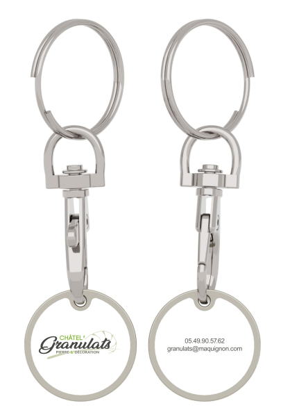 Le jeton de caddie Chroma comporte des zones de marquage dédiées au recto et au verso, prêtes à être marquées en impression photo avec votre logo, votre image et d'autres détails précis. Disponible en format 1£ et 1€, le Chroma est un cadeau publicitaire qui attire l'attention et qui vous permet de faire connaître votre marque à chaque fois qu'il est utilisé.